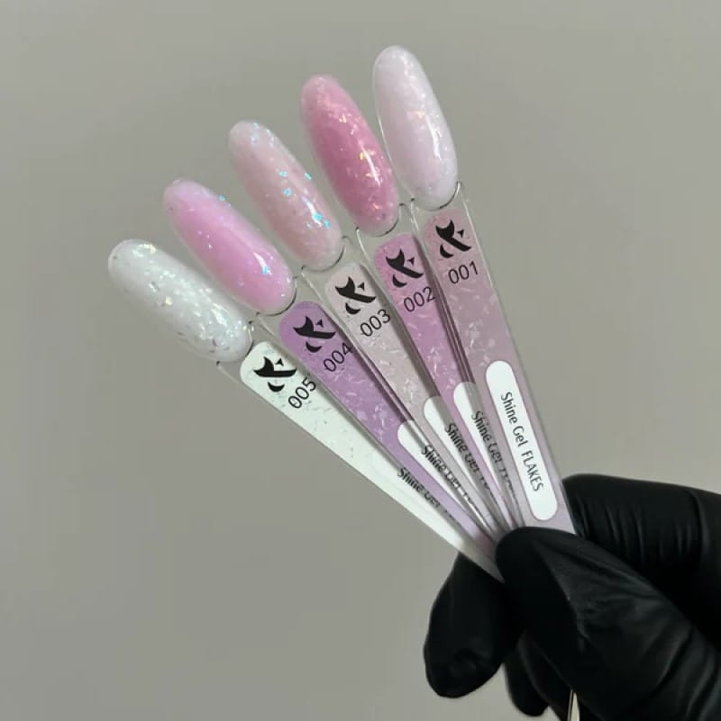 F.O.X Shine Gel Flakes to innowacyjny żel wzmacniający o średniej gęstości, który łączy trwałość i elastyczność z eleganckim, błyszczącym wykończeniem. Delikatne drobinki i subtelna cięta folia równomiernie rozkładają się w masie, nadając paznokciom naturalny efekt z nutą glamour.